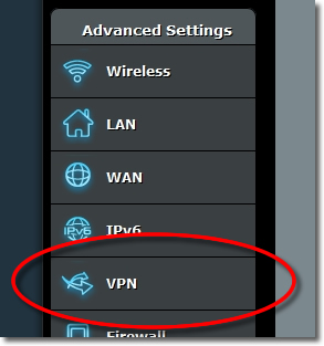 Login to your ASUS router adminstration and from the ‘Advanced Settings’ panel go to ‘VPN’.