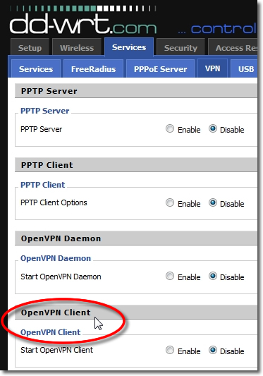 Check to see that you have the ‘OpenVPN Client’ installed on the DD-WRT firmware. Please do not enable it, we just need to check that its there. If the OpenVPN Client is not listed please double check you have the latest DD-WRT firmware release.