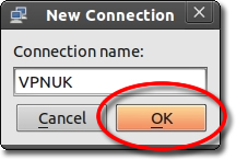 Enter the name for the new connection, then click ‘OK’.
