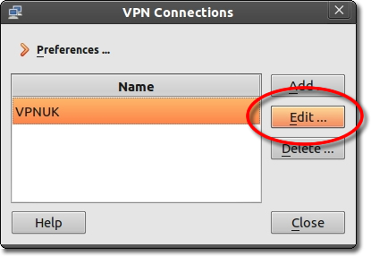 1. Go to the VPNUK connection and click Edit, in the window that appears, select the IPv4 Settings tab.