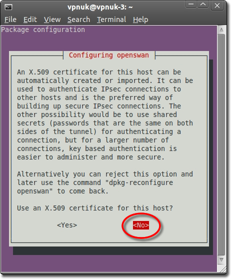 You may be asked if you would like to install certificates for this host. The VPNUK servers do not use certificates, we use shared secrets so you do not need to install the certificate.